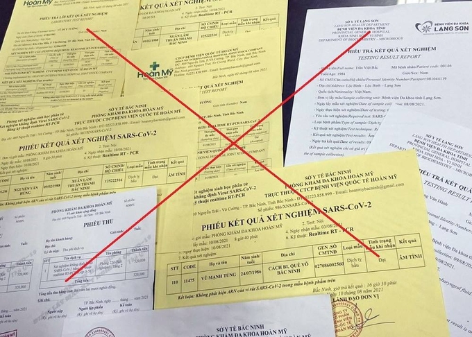 Cảnh sát thu thêm 7 giấy xét nghiệm giả mang danh nghĩa Bệnh viện Quốc tế Hoàn Mỹ Bắc Ninh, Bệnh viện Đa khoa tỉnh Lạng Sơn và một số văn bằng chứng thực giả.
