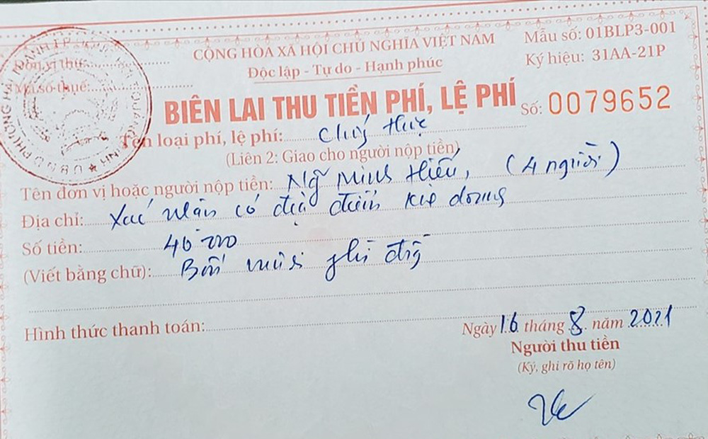 "Chúng tôi đến trụ sở phường làm thủ tục thì lãnh đạo phường đã ký xác nhận. Đơn sau đó được chuyển đến bộ phận đóng dấu. Cán bộ ở đây cho biết phải nộp tiền lệ phí 10.000 đồng/trường hợp", một người dân cho biết.Theo phản ánh của người dân, sau khi nộp tiền, UBND phường Hải Thành không cung cấp phiếu thu hay hóa đơn liên quan gì cho người dân. Ngoài ra, trong số những người đến làm thủ tục thì có trường hợp bị thu tiền, có trường hợp không.