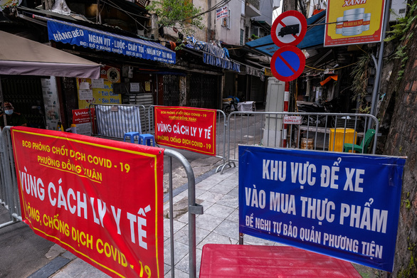 Một chốt kiểm soát dịch ở phường Đồng Xuân, quận Hoàn Kiếm, Hà Nội - Ảnh: NAM TRẦN