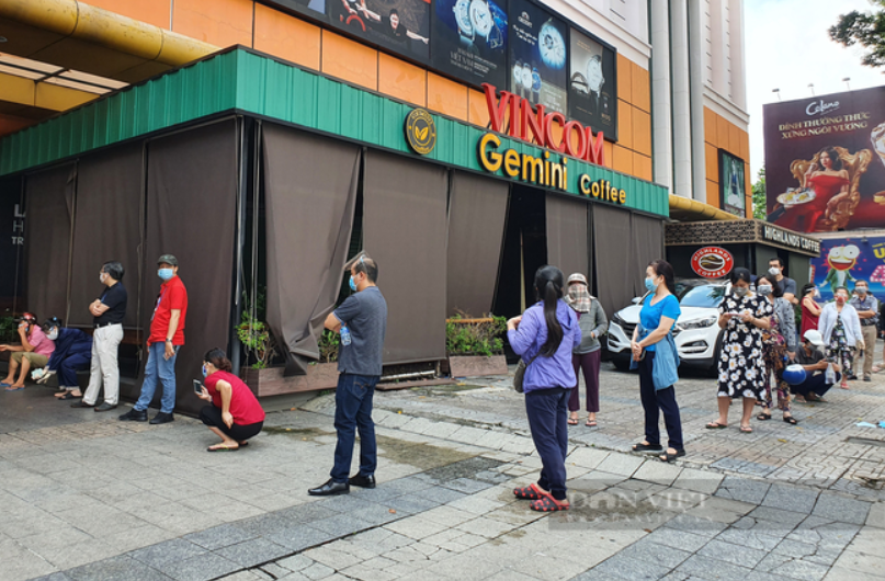Ghi nhận của Dân Việt tại nhiều điểm bán thực phẩm tại các quận 3, 10, Phú Nhuận, Bình Thạnh… mới hơn 6h sáng, các siêu thị, cửa hàng chưa mở cửa nhưng người dân đã đến chờ để mua hàng khá đông.