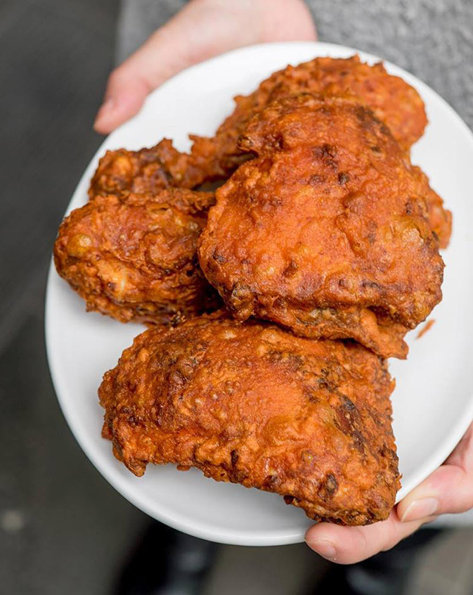 Ayam goreng là tên gọi gà rán ở Indonesia và Malaysia. Không giống với gà rán kiểu Mỹ, món gà này không tẩm bột mì mà thay bằng nhiều hỗn hợp gia vị khác. Tại mỗi vùng sẽ có cách tẩm gia vị khác nhau, song thường bao gồm muối, tỏi, nghệ, hẹ tây, nước me và sả. Gà sau đó được chiên trong dầu dừa. Theo Nosh On It, món ăn này rất phổ biến tại đảo Bali. Mỗi gia đình tại đảo có công thức rán gà của riêng mình dựa trên các loại gia vị có sẵn tại đia phương. Ảnh: Facebook Mamak Haymarket