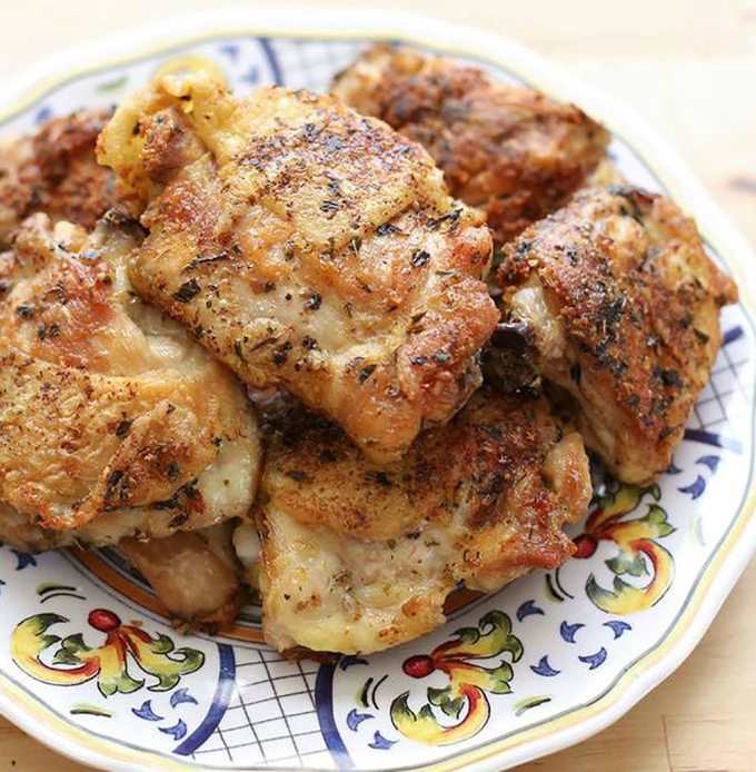 Gà rán pollo frito kiểu Italy được chế biến gần giống với gà rán kiểu Mỹ gồm lăn thịt với bột mì, nhúng qua trứng và chiên trong dầu nóng. Tuy nhiên, điều làm nên hương vị đặc trưng cho món ăn là các loại thảo mộc và gia vị địa phương như hương thảo, tỏi, chanh. Người Italy ăn gà rán kèm với khoai tây nướng. Ảnh: Facebook The Slow Roasted Italian
