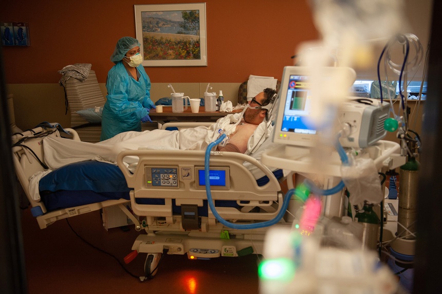Một bệnh nhân Covid-19 trong bệnh viện ở Mississippi, Mỹ. Ảnh: New York Times.
