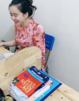 Một đoạn clip 20 giây quay cảnh cô giáo đang trong tiết học. Bên cạnh laptop, thiết bị dạy học đều có đủ. Cô giáo mặc áo dài thướt tha, gương mặt trang điểm nhấn thêm chút son môi khiến gương mặt bừng sáng.