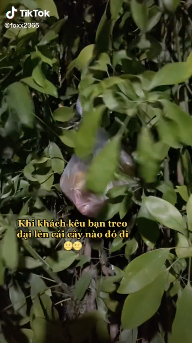 Mới đây nhất, dân tình đã được phen "cười mệt" trước pha "làm theo lời khách" của một anh chàng shipper. Trong lúc đi giao một đơn thức ăn, để đảm bảo an toàn theo đúng quy định 5K, anh bạn này có được khách hàng yêu cầu treo đơn hàng kia lên một cái cây nào gần nhà rồi sẽ ra nhận sau.