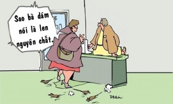 - Hôm qua tôi mua ở đây một cái chăn, bà nói là làm từ len nguyên chất. Về đến nhà tôi mới phát hiện bà đã lừa đảo.