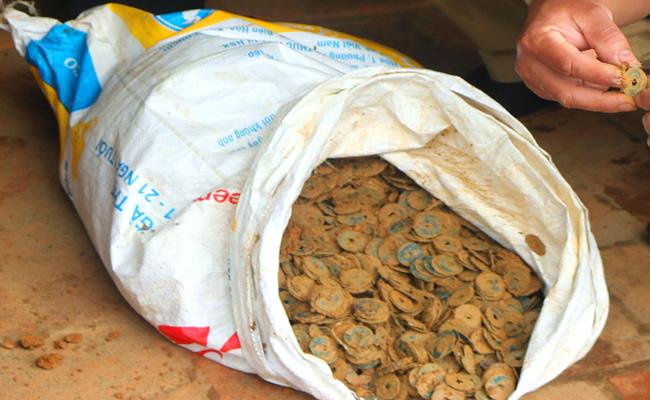 Được biết, chum tiền cổ mà gia đình phát hiện được nặng khoảng 10kg. Đây là tiền Minh Mệnh Thông Bảo, thời Nguyễn, có niên đại khoảng 200 trước.