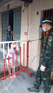 Một cô bé chừng 6 - 7 tuổi trong khu dân cư phong tỏa, khi thấy các chú bộ đội đi qua nhà đã bám vào rào chắn mà khóc nức nở. Người nhà ra sức dỗ dành, có người còn gỡ tay bé ra để đưa về nhà, nhưng em bé không chịu, hất ra rồi ôm rào... khóc tiếp.