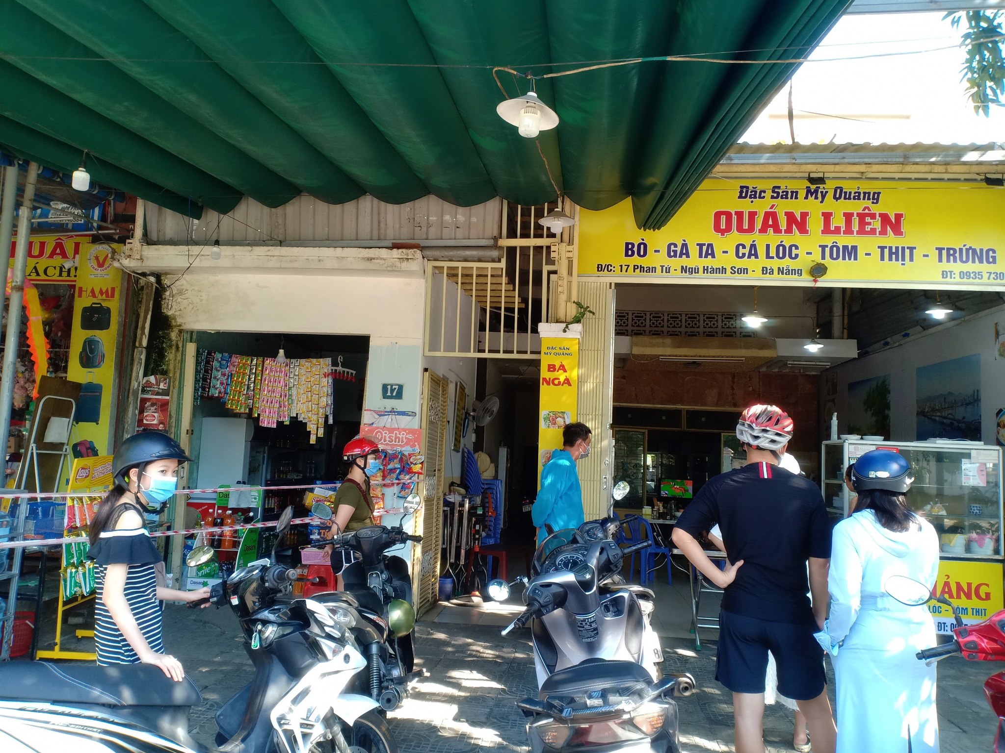 Một quán bún trên đường Khúc Hạo (Nại Hiên Đông, Q.Sơn Trà) căng dây để người dân tự xếp hàng, giãn cách