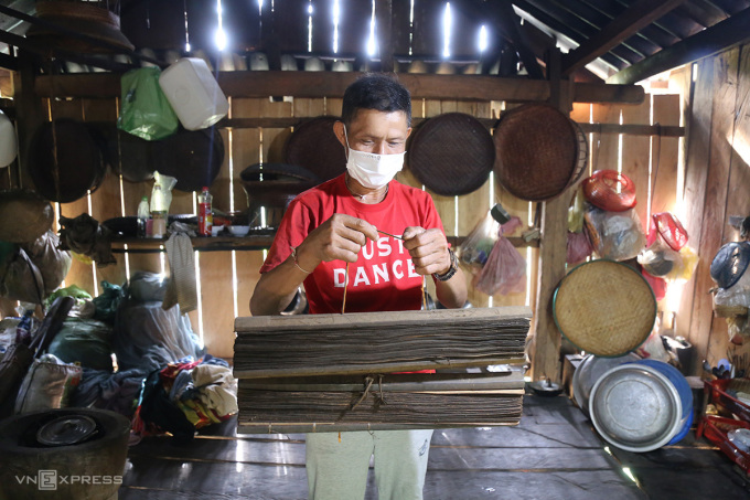 Trong căn nhà sàn cũ kỹ nằm giữa những cây cổ thụ rậm rạp, ông Hồ Khiên (59 tuổi, trú bản La Trọng 1, xã Trọng Hóa, huyện Minh Hóa) đứng nhón chân, cẩn thận lấy cái bao tải trên nóc tủ xuống. Bên trong là 2 cuốn sách lá, được ông và gia đình xem là kỷ vật của tiền nhân, cất giữ cẩn thận từ nhiều đời.