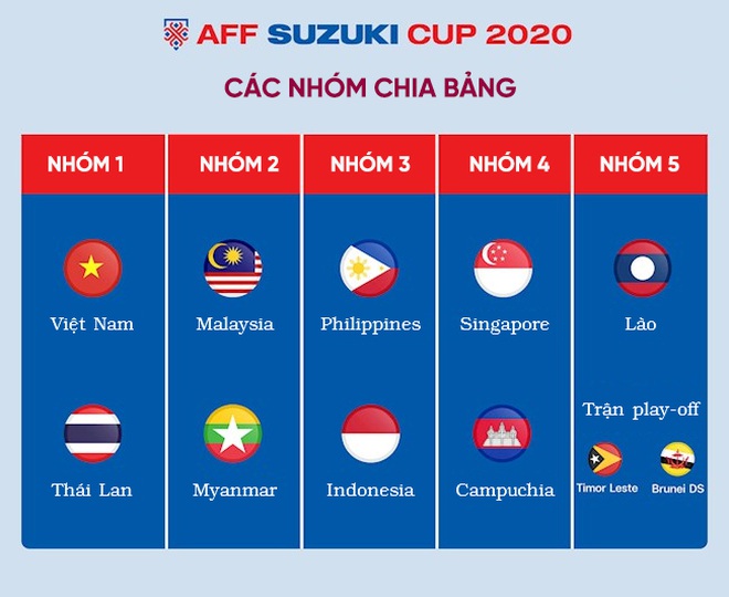 Ở AFF Cup 2020, Việt Nam chắc chắn không chạm mặt Thái Lan tại vòng bảng bởi hai đội là hạt giống của mỗi bảng. Theo kết quả của việc chia nhóm, đội tuyển Việt Nam hoàn toàn có thể rơi vào một bảng đấu với nhiều đội bóng hàng đầu của Đông Nam Á như Malaysia, Philippines, Singapore, Lào.