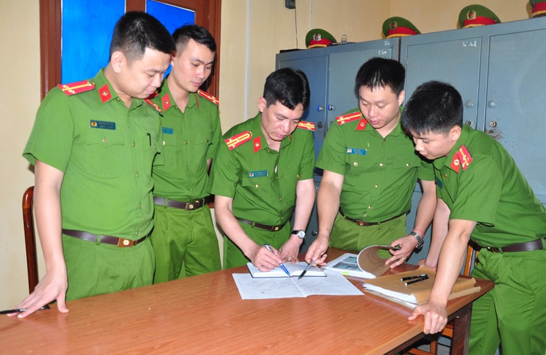 Cán bộ, chiến sĩ cảnh sát hình sự họp bàn phá án. (Ảnh: Fanpage CAT Tuyên Quang)