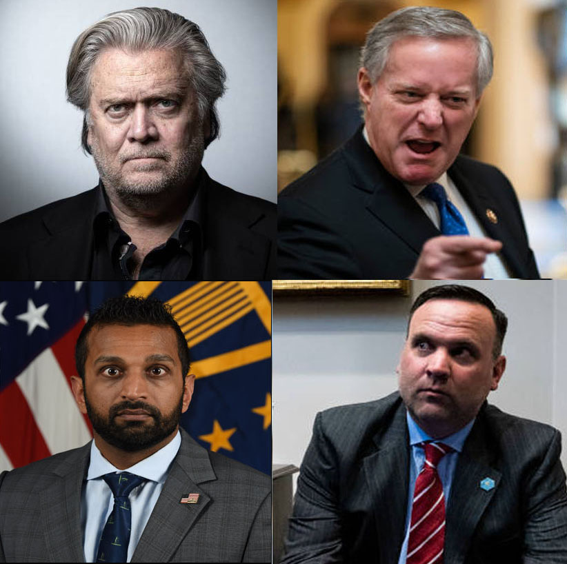 Từ trái, hàng trên là Steve Bannon, Mark Meadows; hàng dưới là Kashyap Patel và Dan Scavino. (Getty Images / Wikipedia)