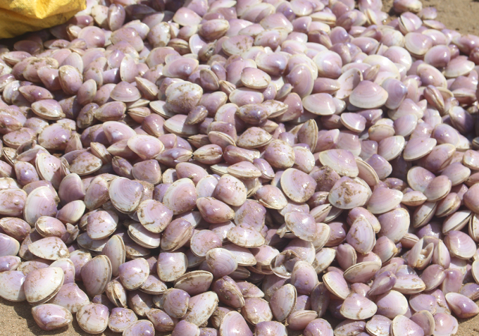 Có đoạn cả chục mét ở sát mép nước, ngao nằm xếp mái lên nhau hoặc bị sóng đẩy dạt hẳn lên bãi. Một số người dùng cào lội nước ngập ngang bụng cách bãi cát hơn 10 m kéo vào cả ngao lẫn cát, phân loại.