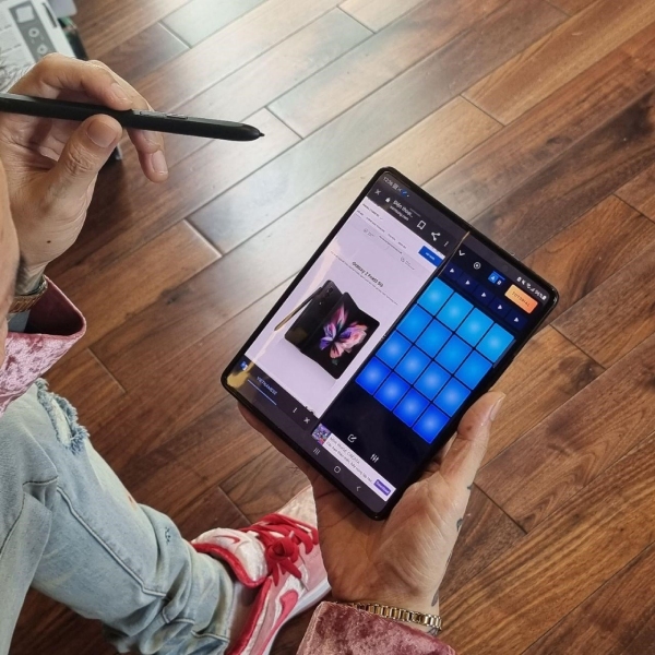 Sự táo bạo của Galaxy Z Fold 3 nằm ở việc, chỉ từ hình dáng rất gọn nhẹ của một chiếc điện thoại thông thường, nhưng khi mở ra, chiếc điện thoại như trở thành một thế giới phong phú đầy màu sắc, nơi mà mọi giới hạn vật lý đều bị thách thức, để trở thành một “phòng studio” sáng tạo thực thụ. Công nghệ camera ẩn dưới màn hình và bút S Pen được trang bị sẵn đem lại một không gian rộng lớn để BinZ có thể mở nhiều ứng dụng cùng một lúc và thoả sức chìm đắm trong những chất liệu sáng tác lời rap đầy ngẫu hứng trong khi vẫn có thể thao tác với ứng dụng Mixer để nhanh chóng hoàn chỉnh các giai điệu cho sản phẩm âm nhạc mới của mình. Điều thú vị là trong lúc đang tận dụng các công nghệ đẳng cấp của chiếc điện thoại tuyệt vời này cho công việc sáng tác, chính Galaxy Z Fold 3 lại trở thành nguồn cảm hứng âm nhạc bất tận trong BinZ. Anh chàng ngay lập tức dùng bút S Pen ghi lại lời rap :“Chẳng cần in đậm để gây ấn tượng, Z Fold in my pocket, It’s thời thượng" hay “ Anh sẽ bắt em kịp baby khỏi nấp, Vì nhan sắc em tuyệt nên anh phải gấp” và đăng tải nóng hổi lên mạng xã hội, nhanh chóng thu hút hàng trăm nghìn lượt “thả tim”, like và share của người hâm mộ.