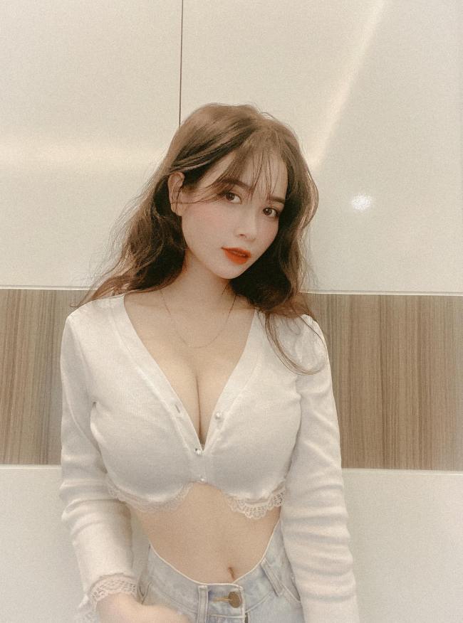 Để tôn lên vòng một đầy đặn, vòng eo thon gọn, cô thường xuyên chọn mặc áo croptop.