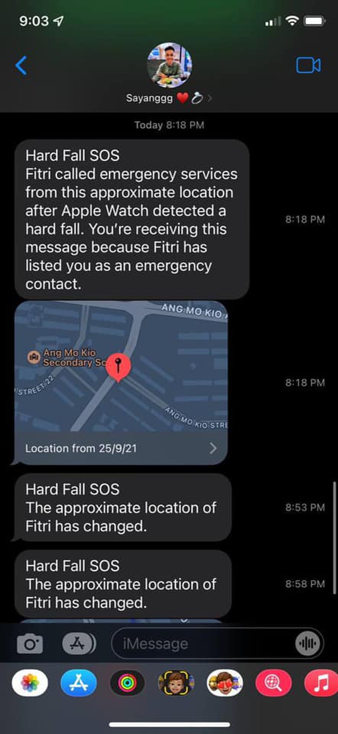 Trong trường hợp này, sau khi phát hiện ra Fitri bị ngã và không có phản hồi, chiếc Apple Watch 4 đã gửi tin nhắn khẩn cấp đến số điện thoại bạn gái của anh, kèm theo địa điểm xảy ra vụ việc, đồng thời gọi điện cho lực lượng cứu hộ.