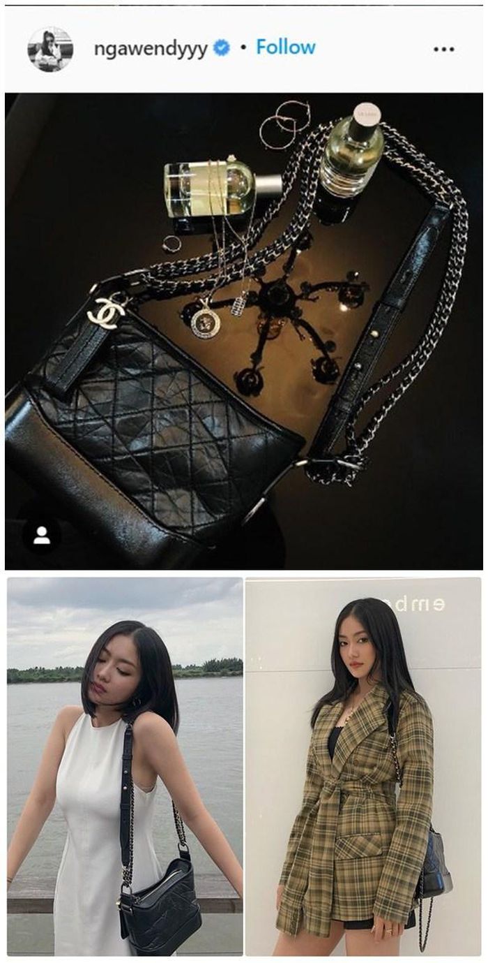 Chiếc túi da đen của Chanel là phiên bản Gabrielle được nhiều "yêu nữ hàng hiệu săn đón". Cô nàng cũng đã sở hữu một chiếc và mix với đa dạng phong cách, từ nữ tính tới cá tính hơn với áo kẻ sọc. Item này có giá khoảng hơn 110 triệu đồng.