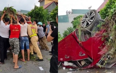Tại hiện trường, trong khi một nam một nữ bị thương nằm bất tỉnh ngay bên ngoài thì còn một nam thanh niên khác bị mắc kẹt bên trong chiếc xe gặp nạn