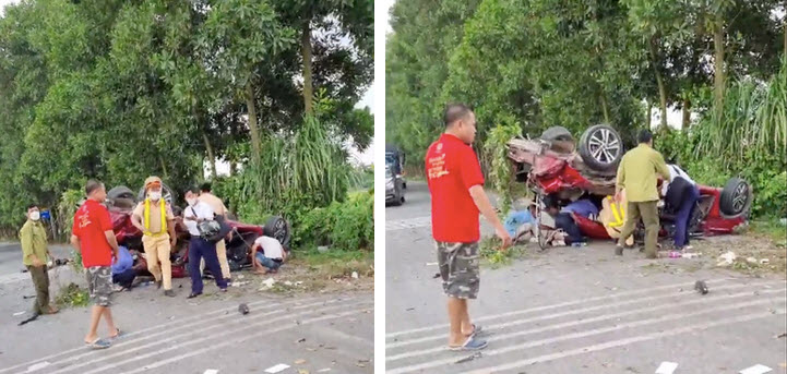 Theo như hình ảnh của vụ tai nạn tại xã Trung Chính, huyện Lương Tài (Bắc Ninh) chiều nay đã làm 3 người tử vong. Trong đó có N.V.N. là một hot facebooker, khiến tại hiện trường vụ tai nạn thảm khốc, chiếc ô tô bị lật úp, hư hỏng nặng khiến 3 người tử vong.