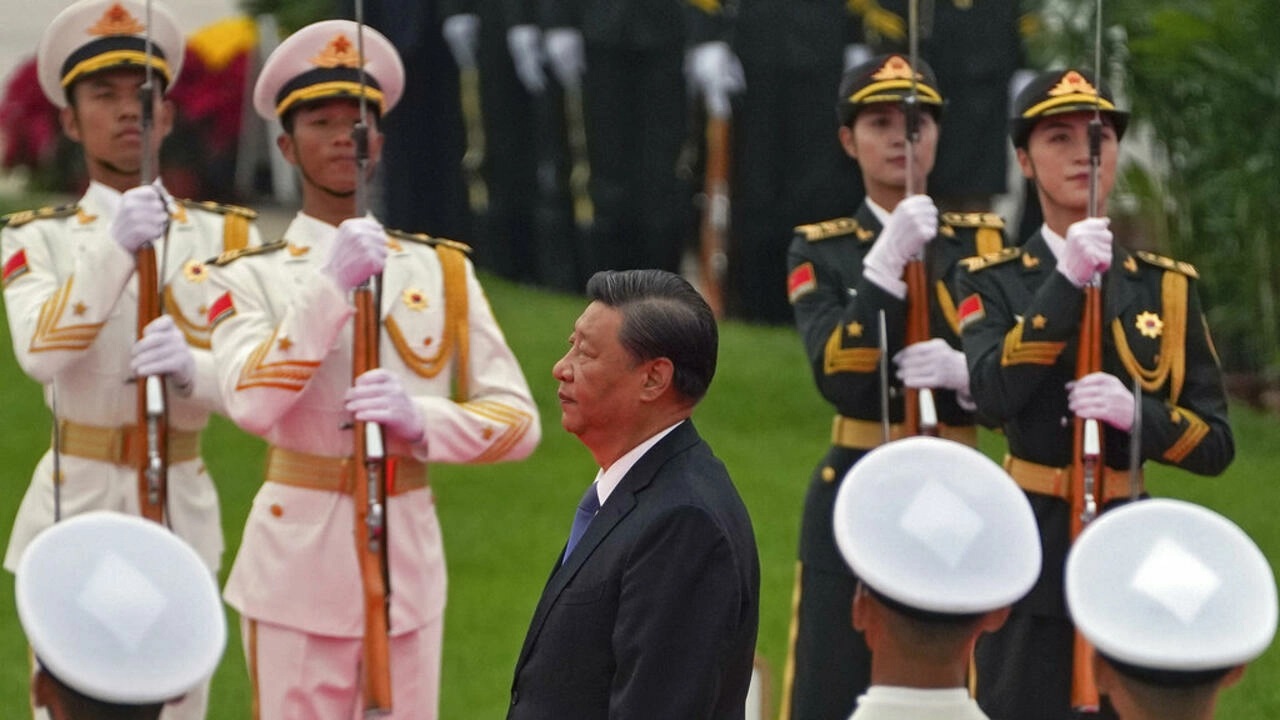 Ảnh minh họa : Chủ tịch Trung Quốc Tập Cận Bình thăm đài liệt sĩ ở quảng trường Thiên An Môn, 30/09/2021. AP - Andy Wong