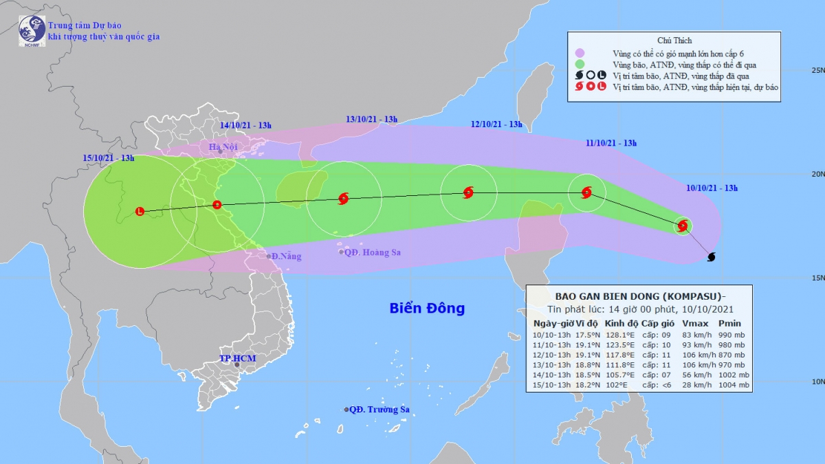 Đồng thời, hiện nay cơn bão có tên quốc tế Kompasu đang hoạt động ở ngay khu vực biển phía đông Philippines, đêm mai (11/10) bão có thể vào Biển Đông và trở thành cơn bão số 8. Đây là cơn bão mạnh, tốc độ di chuyển nhanh, sức gió mạnh nhất trên biển có thể tới cấp 10 đến 11, giật cấp 13 và có khả năng ảnh hưởng trực tiếp đến đất liền, gây gió mạnh, mưa lớn tại các tỉnh Bắc Bộ, Bắc và Trung Trung Bộ trong một vài ngày tới. Đây là tình huống thiên tai nguy hiểm liên tiếp (nguy cơ bão chồng bão, lũ chồng lũ) trong khi dịch bệnh Covid-19 vẫn còn phức tạp ở một số địa phương, nhiều người dân đang di chuyển từ các tỉnh phía Nam ra phía Bắc qua khu vực có nguy cơ bị ảnh hưởng của bão, lũ, ngập lụt, sạt lở đất.