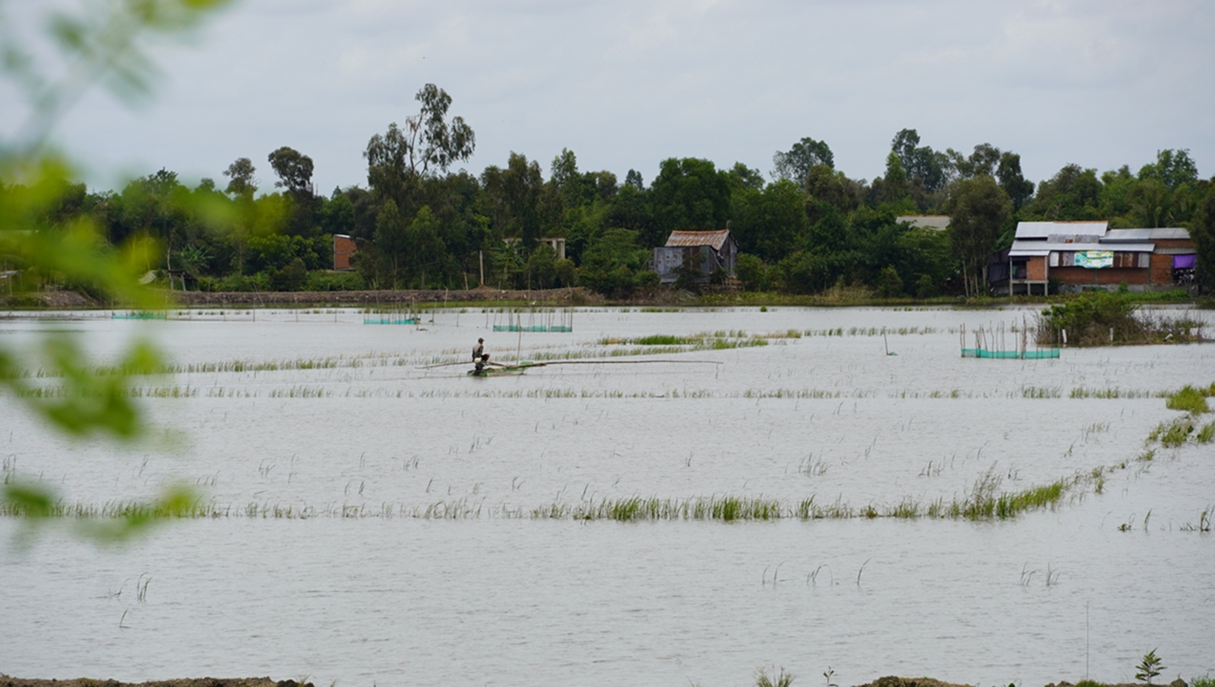 Ngoài những cánh đồng không có đê bao không thể làm vụ ba xả cửa cho lũ vào, một số cánh đồng nông dân tiếp tục gieo sạ với khoảng gần 8,000 hécta.