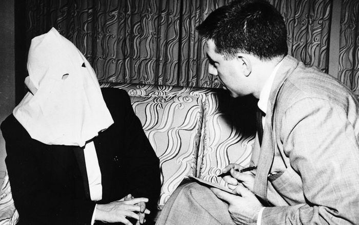 Người đàn ông này đội một mũ trùm đầu màu trắng bí hiểm che gần hết mặt (chỉ chừa 2 con mắt) khi ngồi trong một studio tối tăm. Cái vẻ lạ lẫm của anh ta được phát trên sóng truyền hình tới mọi nơi trên lãnh thổ Mỹ. Mỗi gia đình Mỹ có tivi đều có thể xem và nghe người đàn ông này nói bằng tiếng Anh giọng Nga.