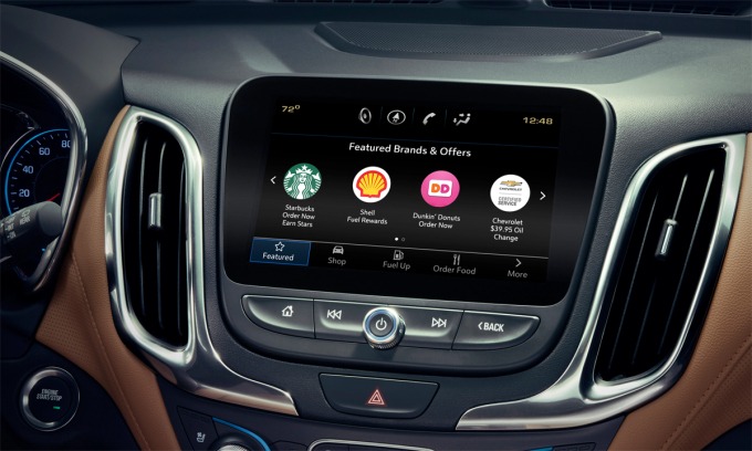 Ứng dụng Marketplace trên một mẫu xe của GM, cho phép tài xế mua đồ uống hoặc thanh toán tiền xăng ngay trên xe. Ảnh: GM