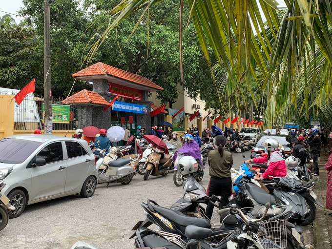 Phụ huynh trường Tiểu học Giấy Bãi Bằng (huyện Phù Ninh) đợi con test Covid-19 tại trường vào sáng 18/10. Ảnh: Việt An