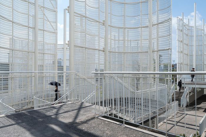 Những tấm mạng che trong mờ mỏng manh đầy cảm xúc ôm lấy các đường dạo và tạo nếp cho công trình.