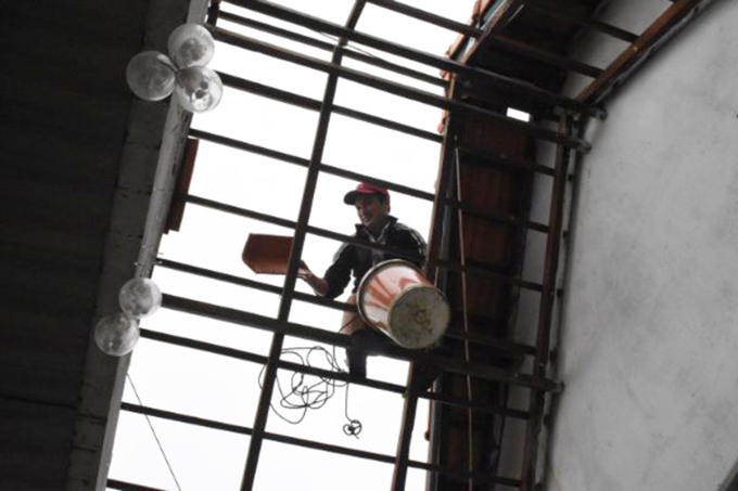 Người dân lợp lại mái nhà sau khi lốc xoáy làm hư hỏng. Ảnh: Thạch Thảo