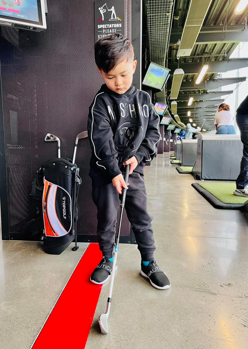 Doanh nhân Thủy Tiên chia sẻ hình ảnh con trai Mathis Thiên Từ, bốn tuổi tự tin chơi golf. Cậu bé hào hứng với bộ môn thể thao "dành cho giới quý tộc". Chị Thủy Tiên cho biết: "Trước đây, gia đình tôi đi chơi golf dẫn theo bé Thiên Từ. Tôi nhận thấy con thích, quan tâm môn này nên đã hỏi con có muốn học không và tôi rất vui khi bé hào hứng để học.