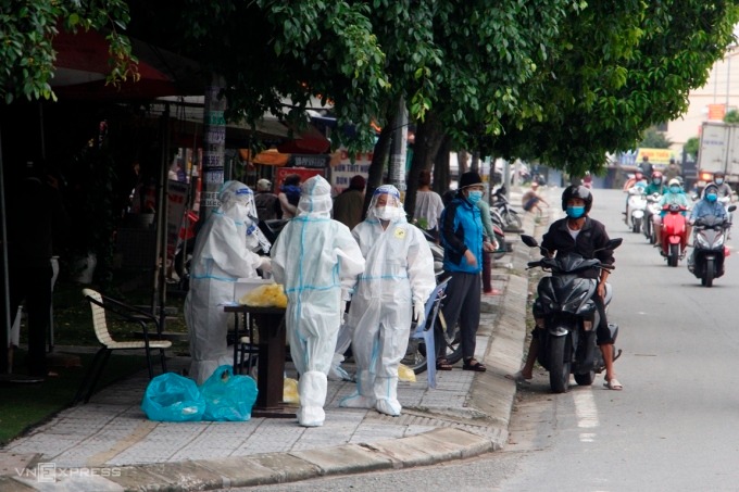 Nhân viên y tế lấy mẫu xét nghiệm ở phường Thuận An, TP Huế ngày 19/10. Ảnh: Võ Thạnh