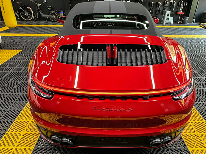 Chiếc Porsche 911 Carrera S Cabriolet thứ hai tại Việt Nam mang màu sơn đỏ tươi, được thương hiệu xe thể thao đến từ Đức gọi là Guards Red. Đây là màu sơn tiêu chuẩn của Carrera S và khách hàng sẽ không tốn tiền khi chọn màu sơn này.