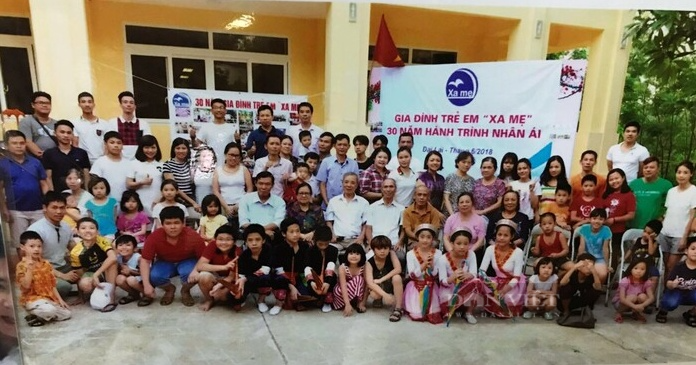 Hình ảnh nhóm gia đình trẻ em "xa mẹ" tham gia hoạt động hành trình 30 năm nhân ái năm 2018. Ảnh: NVCC