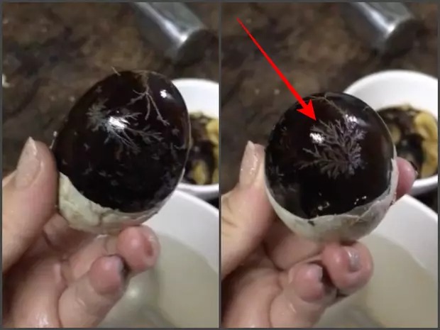Thậm chí nhiều quả trứng bắc thảo khác còn có hình bông tuyết. Nếu trứng bạn mua về không có hiện tượng này thì xui cho bạn, nó chưa chín tới đâu.