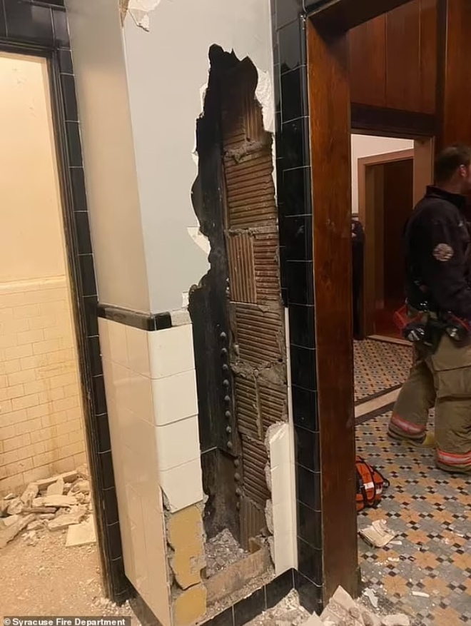 Một người đàn ông khỏa thân đã bị mắc kẹt trong một khoảng hở giữa những bức tường bên trong một nhà hát ở New York (Mỹ). Sau vài ngày sự việc xảy ra, người này mới được phát hiện (Ảnh: Daily Mail).