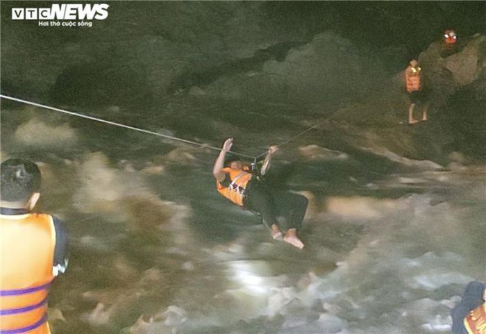 Để giải cứu, lực lượng cứu hộ đã đưa dây ra vị trí nơi nạn nhân đứng rồi cố định chặt. Đồng thời các chiến sỹ công an đu dây qua để hướng dẫn người bị nạn cột dây vào ròng rọc để kéo vào bờ.