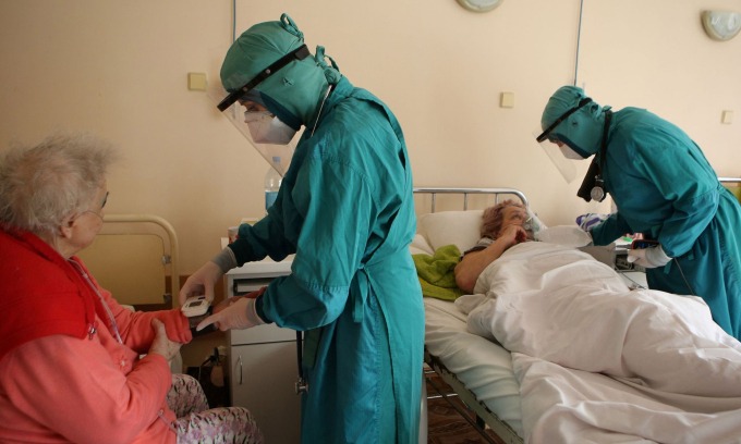 Các chuyên gia y tế chăm sóc bệnh nhân Covid-19 tại bệnh viện ở Uzhgorod, Ukraine, hôm 10/11. Ảnh: Reuters.