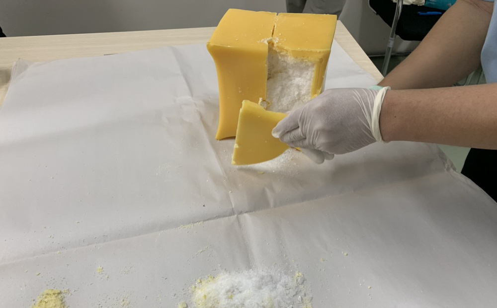 Bằng biện pháp nghiệp vụ lực lượng đã kiểm tra thực tế và thu giữ gần 5 kg ma túy (4.934 gram) là Amphetamine được ngụy trang tinh vi bằng cách đúc giữa các khối sáp thơm, để lẫn cùng với quần áo, đồ chơi trẻ em.