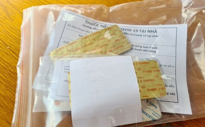 Thời gian qua, F0 tại nhà ở TP HCM chủ yếu nhận được túi thuốc A gồm thuốc hạ sốt và các vitamin nâng cao thể trạng. Ảnh: Lê Phương