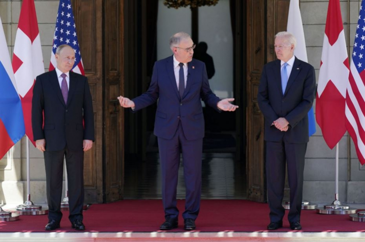 Từ trái sang phải: Tổng thống Nga Vladimir Putin, Tổng thống Thụy Sĩ Guy Parmelin và Tổng thống Mỹ Joe Biden tại Geneva, Thụy Sĩ ngày 16/6/2021. Ảnh: AP