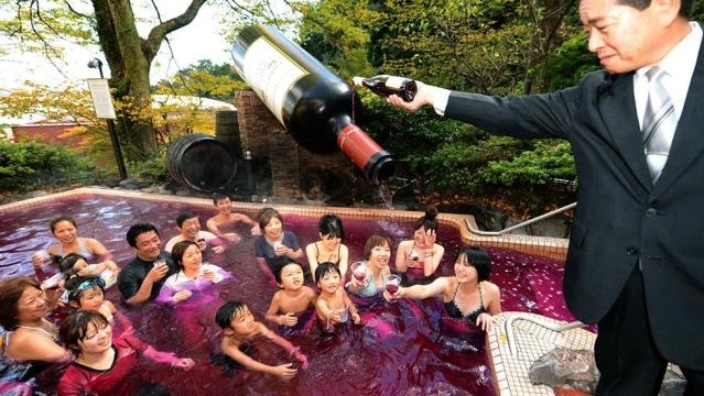 Bồn tắm Beaujolais Nouveau tại một nhà tắm Nhật Bản. Ảnh: SoraNews24