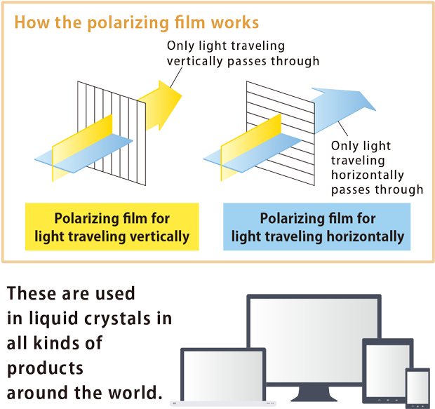 Cơ chế hoạt động của 2 lớp kính lọc phân cực nói riêng và màn hình LCD nói chung có thể tóm tắt như sau: Khi ánh sáng được phát ra từ đèn nền của màn hình LCD, chúng có vô số phương phân cực như các ánh sáng tự nhiên.
