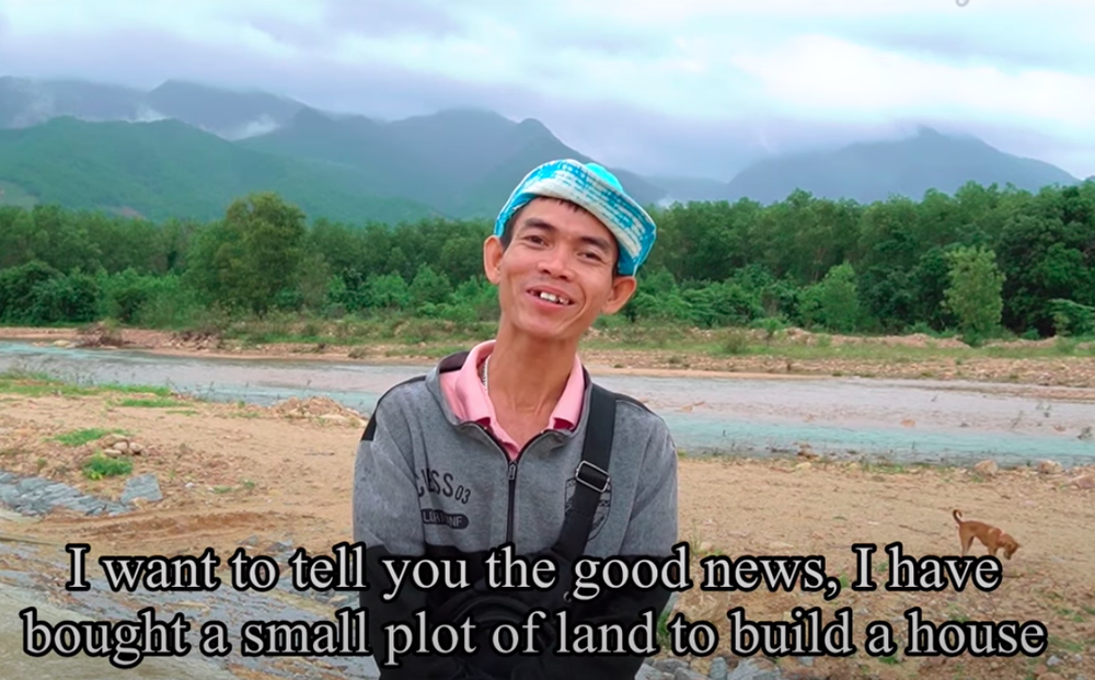 Anh hào hứng giới thiệu với khán giả mảnh đất tìm mua suốt 3 tháng trời: "Lô đất của mình chiều rộng 12m, chiều dài 54m, cũng rộng thoải mái đủ làm ngôi nhà để ở. Cậu mình vừa đổ xong cát, đá để làm rào. Bây giờ mình hơi bận nên chưa có nhiều thời gian xây nhà".