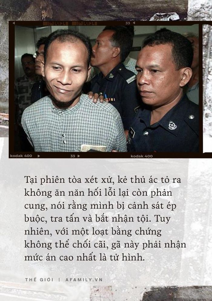Dù đã thú nhận tội ác, khi ra tòa, Ahmad lại phản cung, nói bị cảnh sát ép buộc, tra tấn và bắt nhận tội. Tuy nhiên với loạt nhân chứng và bằng chứng không thể chối cãi, Ahmad Najib bị tuyên tử hình vì tội giết người và hiếp dâm vào ngày 23/2/2005, sau phiên xét xử kéo dài 52 ngày.