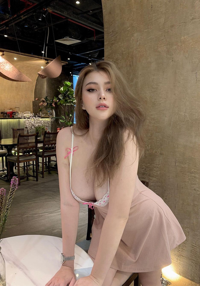 Hot girl nhận được nhiều sự chú ý bởi gu thời trang bạo dạn với phong cách tạo dáng gợi cảm.