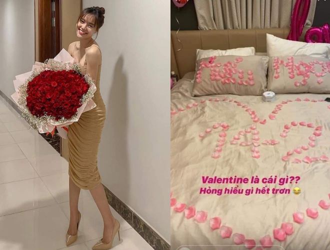 Quản lý Lan Ngọc chia sẻ hình ảnh hai chiếc gối xếp chữ Hiếu - Ngọc (Hiếu là tên thật của Chi Dân) bằng hoa hồng trong ngày Lễ Tình nhân
