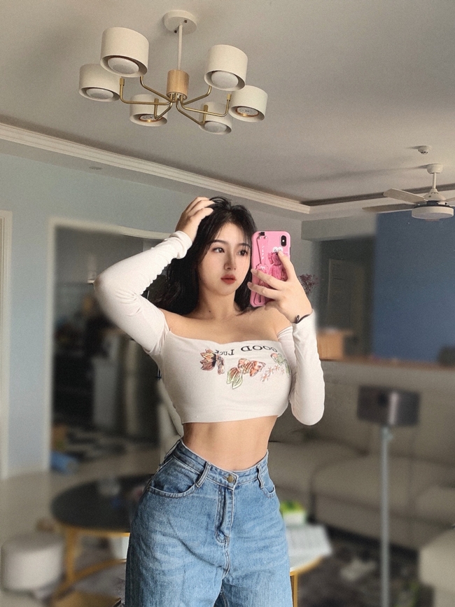 Thân hình nở nang với vòng 1, vòng 3 đầy đặn, vòng 2 thon gọn giúp Hua Hua có dáng người đồng hồ cát.
